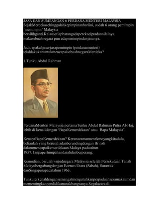 Jasa Dan Sumbangan 6 Perdana Menteri Malaysia